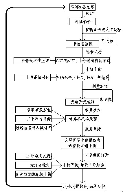 RFID卡自動稱重系統(tǒng)自動識別車輛車牌號碼,方便快捷。要求:場內(nèi)對車輛管理較嚴格,車牌的完整度和清潔度。過磅原理流程如下:
