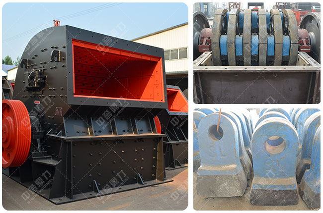 錘頭盡管是轉子的一個構成部分,但他有事單獨存在的一個個體,也是直接與巖石接觸的主要破碎工具,所要使用特種鋼鐵材料鑄造,襯板是配合破碎的一部分,該機械已經(jīng)使用到了反擊力破碎巖石的階段,巖石被擊打出去以后就直接撞到襯板上達成次碰撞破碎,有襯板反彈回破碎空間然后與后來的巖石又一次進行碰撞破碎。