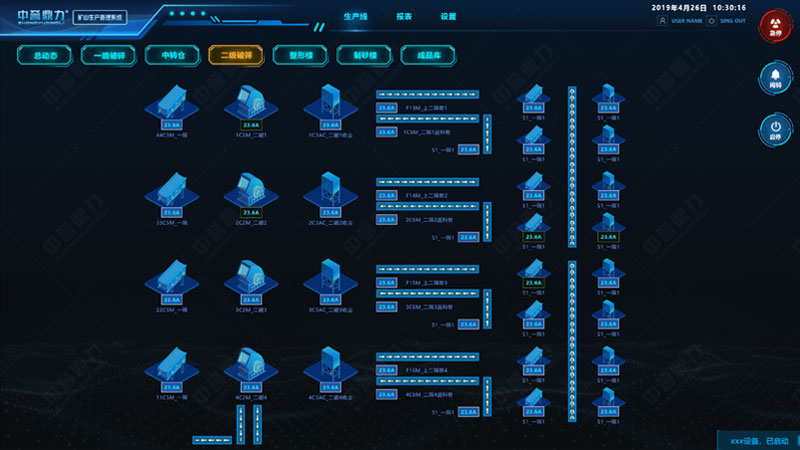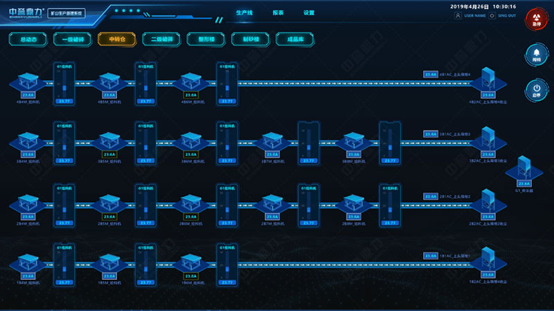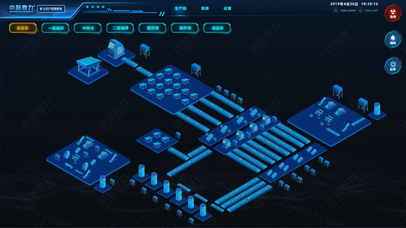 中譽(yù)鼎力礦山生產(chǎn)管理系統(tǒng)(又叫DCS超級中控系統(tǒng)),是為實(shí)現(xiàn)礦山智能化、自動化生產(chǎn)而開發(fā)的可視化生產(chǎn)管理系統(tǒng)。