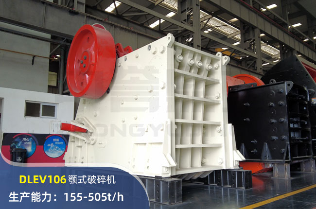 DLEV106鄂式破碎機(jī)允許的進(jìn)料大小為600mm以內(nèi),進(jìn)料口尺寸在1060×700mm,配備電機(jī)功率為110kw,生產(chǎn)能力可達(dá)500t/h。