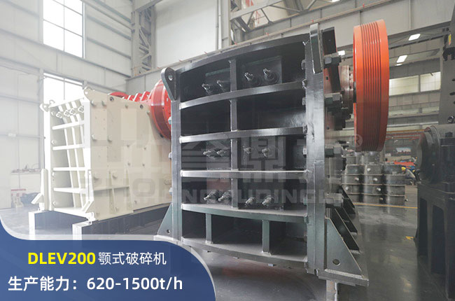 DLEV200顎式破碎機進料粒度在1250mm左右,出料大小在135-350mm,配備400kw電機,產量可達時產1500噸。