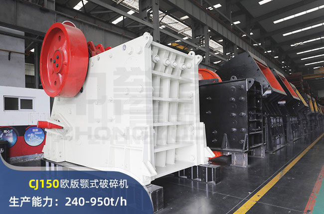 CJ150顎式破碎機(jī)進(jìn)料口尺寸1400×1200mm,進(jìn)料粒度960mm,出料大小125-250mm,電機(jī)功率22kw,處理可達(dá)時(shí)產(chǎn)950噸。