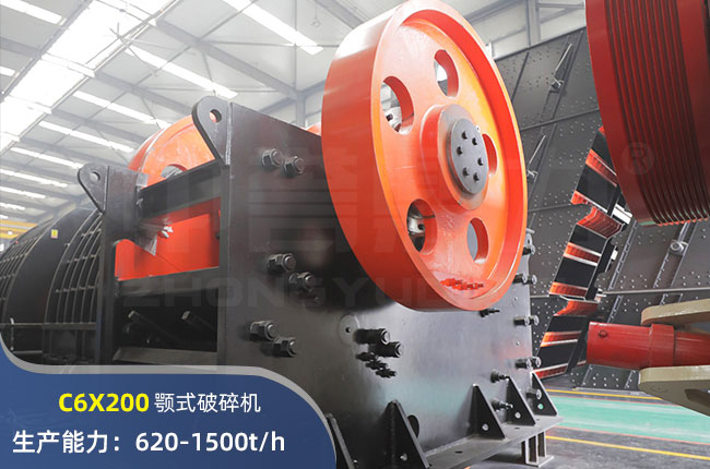 C6X200顎式破碎機一款時產(chǎn)量在1500噸左右的大型設(shè)備,其破碎能力強,在生產(chǎn)線中擔(dān)當(dāng)一破設(shè)備,主要有破碎比大、產(chǎn)品粒度勻稱、構(gòu)造簡要、工作靠譜等優(yōu)勢。