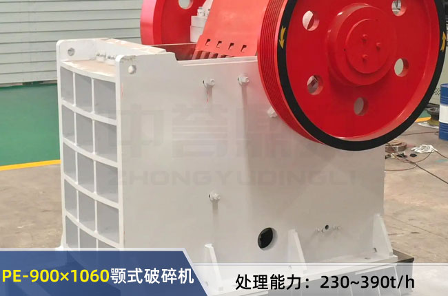 PE-900×1060顎式破碎機(jī)型號(hào)為PE-900×1060,其中PE表示PE系列顎式破碎機(jī),900×1060mm指進(jìn)料口尺寸,適用于粒徑不大于≤685mm的各種物料粗碎加工,排料口調(diào)整范圍在230-290mm,可實(shí)現(xiàn)每小時(shí)230-390噸的產(chǎn)能,標(biāo)配的是8p 110kw的電機(jī),轉(zhuǎn)速是250r/min,其外型尺寸(長*寬*高)是2870×2420×2940mm,設(shè)備重量33噸。