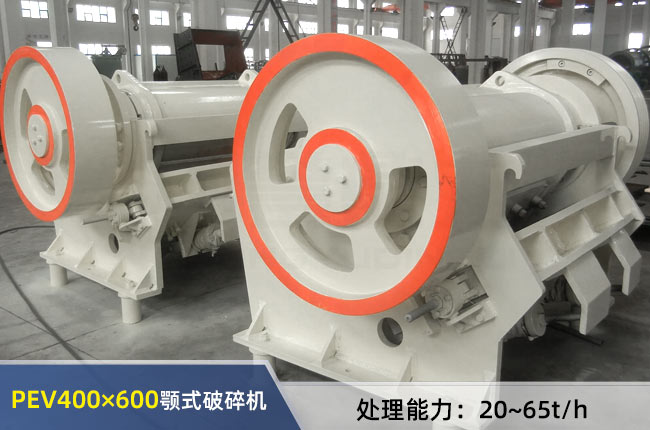 PEV400×600顎式破碎機(jī)時(shí)產(chǎn)20-95噸,電機(jī)功率為30或37千瓦,進(jìn)料粒度要求<340mm,出料范圍40-80mm,重量是7噸,外形長(zhǎng)2500mm,寬1750mm,高1950mm。