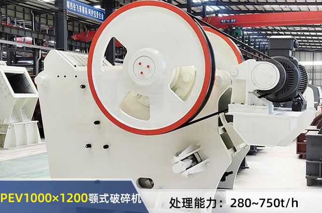 PEV1000×1200顎式破碎機(jī)它允許破碎<850mm的物料,能加工出150~300mm之間的碎石,可加工花崗巖、玄武巖、鵝卵石等各類(lèi)礦石,每小時(shí)產(chǎn)量280-750噸。
