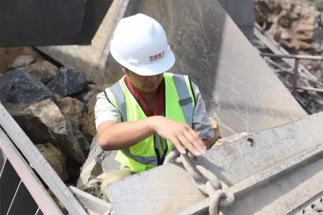 在生產(chǎn)線現(xiàn)場(chǎng),中譽(yù)鼎力安裝工程師針對(duì)唐總反映的近幾天進(jìn)料時(shí)有點(diǎn)卡料的情況,及時(shí)檢查破碎機(jī)和皮帶機(jī)運(yùn)行狀態(tài),查看原材料,現(xiàn)場(chǎng)為客戶解決問題。