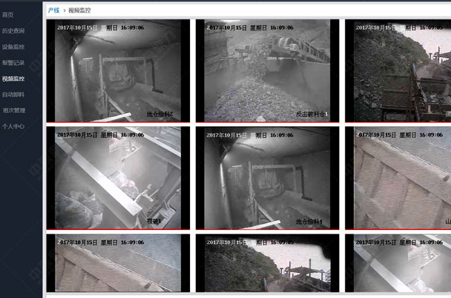 來料車輛進(jìn)出,原料倉料位,給料情況,破碎和篩分設(shè)備的運轉(zhuǎn)情況,皮帶輸送機的運輸情況及整個廠區(qū)的概況等。