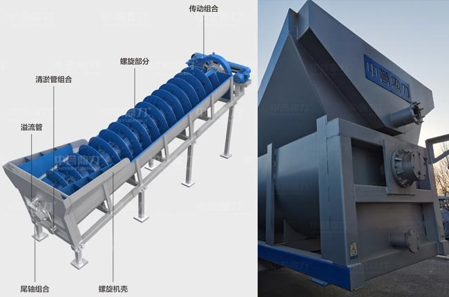 絞龍洗沙機(jī)水里那頭無(wú)傳動(dòng)組,屬于螺旋洗砂機(jī)的尾部,尾部軸承外置于水槽外,避免臟水污染軸承。整機(jī)傳動(dòng)組合在高處,通過電機(jī)和減速器帶動(dòng)軸承旋轉(zhuǎn),葉輪翻轉(zhuǎn)。