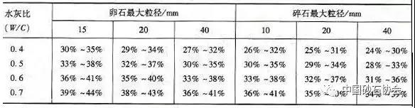 合適的含砂率應(yīng)是石子、砂、水泥漿互相填充,使混凝土既能達(dá)到較高密實(shí)度,又能少的水泥用量。實(shí)踐證明,含砂率一般在30%~38%左右。但由于影響砂率的因素很多,需要根據(jù)石子的形狀、粒徑、孔隙率和砂子的品質(zhì)及水灰比的大小、混凝土和易性等因素,進(jìn)行試驗(yàn)和調(diào)整,而不能僅靠計(jì)算來(lái)解決。