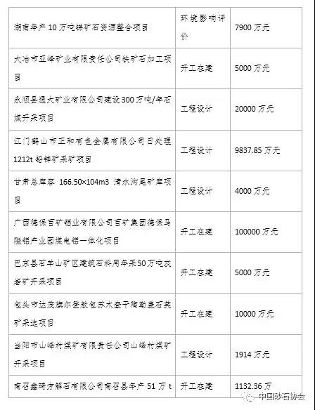 湖南青猴洞1000萬元建筑石料用灰?guī)r礦開采項目;廣東橫磊山礦區(qū)1500萬建筑石料用灰?guī)r礦建設(shè)項目;扶綏縣東門鎮(zhèn)岜樓村琴準屯達獨山1000萬石灰?guī)r礦開采加工項目;巴東縣石羊山礦區(qū)5000萬建筑石料用年采50萬噸灰?guī)r礦開采項目;汨羅市鑫峰石材有限公司年開采8萬立方米花崗巖改擴建項目。