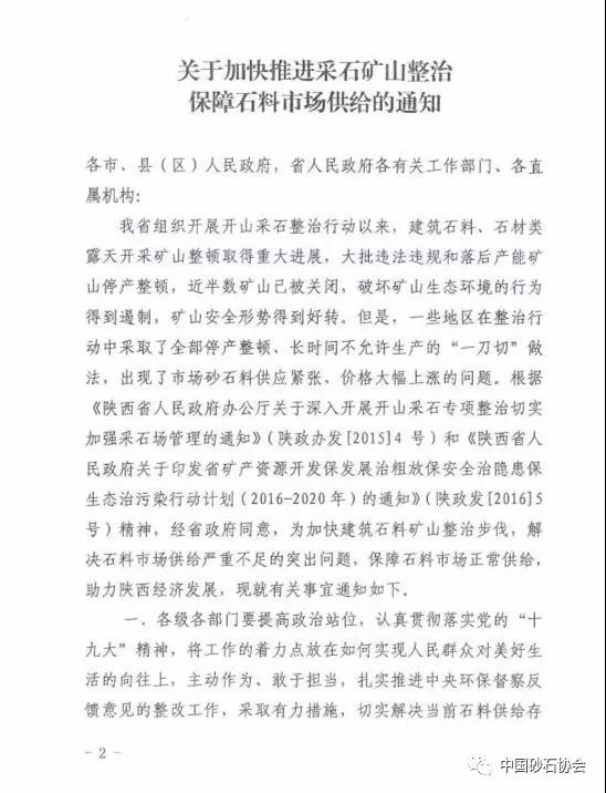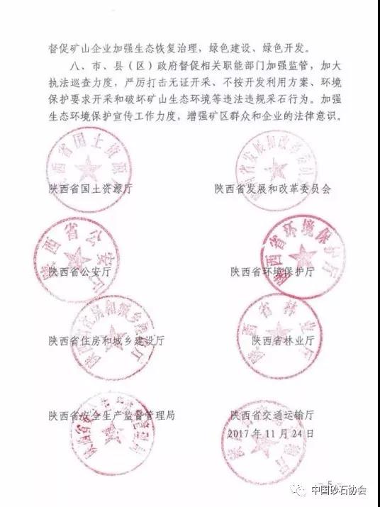 導(dǎo)讀:2017年11月24日,陜西省土資源廳、陜西省發(fā)展和改革委員會、陜西省公安廳、陜西省公安廳、陜西省環(huán)境保護廳、陜西省住房與城鄉(xiāng)建設(shè)廳、陜西省林業(yè)廳、陜西省安生產(chǎn)監(jiān)督管理局和陜西省交通運輸廳八部門聯(lián)和發(fā)布《關(guān)于加快推進采石礦山整治 保障石料市場供