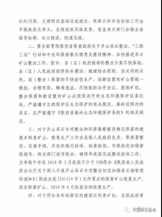 此前,即2017年11月24日,陜西省土資源廳、陜西省發(fā)展和改革委員會、陜西省公安廳、陜西省公安廳、陜西省環(huán)境保護廳、陜西省住房與城鄉(xiāng)建設(shè)廳、陜西省林業(yè)廳、陜西省安生產(chǎn)監(jiān)督管理局和陜西省交通運輸廳八部門聯(lián)和發(fā)布《關(guān)于加快推進采石礦山整治 保障石料市場供給的通知》。為加快建筑石料礦山整治步伐,解決石料市場供應(yīng)嚴重不足的突出問題,保障石料市場正常供給,助力陜西經(jīng)濟發(fā)展。要求: