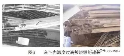 高溫粉塵被收入灰斗后,如果不能及時排出,粉塵會蓄積在灰斗里造成灰斗內溫度不斷升高,濾袋在高溫烘烤下就會變脆、變硬,嚴重時則會燒毀,尤其是粉塵中含有的易燃物質,會在灰斗內燃燒,從而燒毀濾袋(如圖6)。