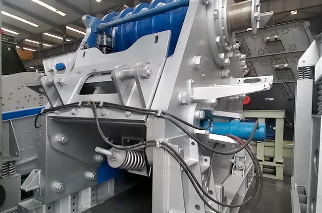 通過液壓雙楔塊調(diào)整裝置,實(shí)現(xiàn)對(duì)顎破機(jī)排料口大小進(jìn)行調(diào)整,是通過改變楔塊厚度尺寸實(shí)現(xiàn)排料口的大小調(diào)節(jié),實(shí)現(xiàn)了排料口的無級(jí)調(diào)節(jié),減小了誤差,調(diào)整精度,并且操作更加省時(shí)、簡便。液壓油密閉設(shè)計(jì),受外界的影響小,使用時(shí)間長。