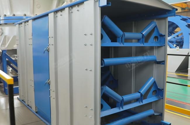 中譽鼎力自主研發(fā)的箱式皮帶輸送機,將皮帶輸送機和生產(chǎn)線設(shè)備部密封在一起,不僅有限避免揚塵外溢,還能減少除塵器使用數(shù)量,生產(chǎn)線設(shè)備投資、后期能耗以及維護成本。