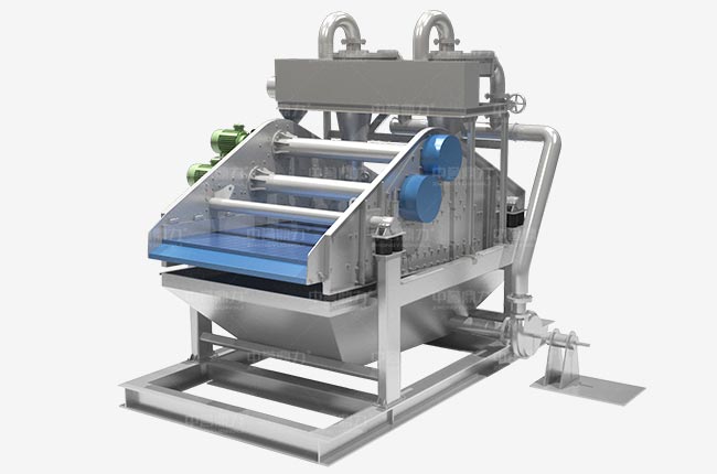 細(xì)沙回收脫水一體機(jī)工作時(shí)渣漿泵將篩水混合物輸送至旋流器,離心分級(jí)濃縮的細(xì)沙經(jīng)沉沙嘴提供給脫水篩,脫水篩負(fù)責(zé)清洗、分級(jí)、脫水后,細(xì)沙、泥等經(jīng)溢流水箱流入污水處理系統(tǒng)。