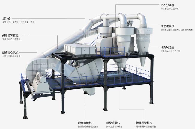 中譽鼎力DLFX選粉樓模塊化塔樓設(shè)計,采用干法選粉技術(shù),具有石粉干燥、潔凈、粒徑準(zhǔn)確等優(yōu)勢,可在3%-15%間調(diào)整成品砂石含分量。