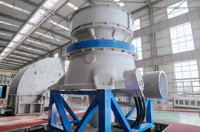 出料大小是由動錐上下運(yùn)動控制,由動錐底部的液壓缸控制調(diào)節(jié),方便快捷,還具備過鐵保護(hù),自動恢復(fù)功能,延長設(shè)備使用壽命,較大程度停機(jī)次數(shù)。