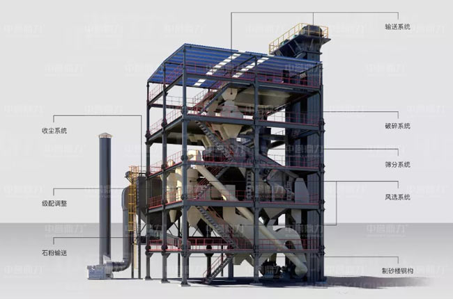干式制砂樓采用模塊化的工藝設(shè)計,利用立體空間,穩(wěn)定性高,占地面積小,工廠機械化加工,提高安裝精度,現(xiàn)場組裝更方便快捷。環(huán)保型制砂整形系統(tǒng)更加人性化的設(shè)計,設(shè)備檢修更加方便。