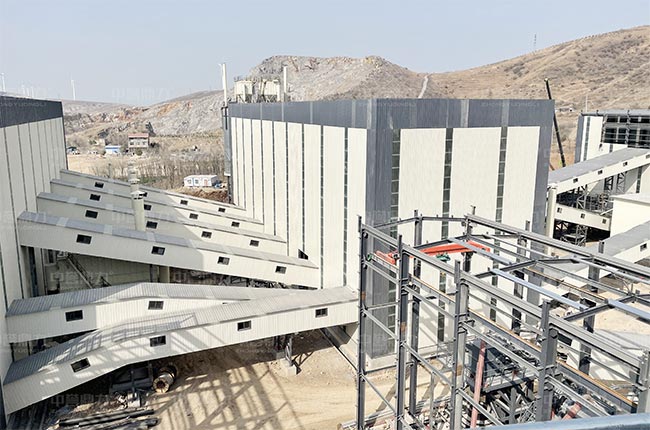 上圖為項目建成后的現(xiàn)場實拍,各個設備采用封閉式生產,無揚塵,噪音小,并且不受雨雪天氣影響,廠區(qū)的空地也都種植了花草樹木,實現(xiàn)花園式生產。