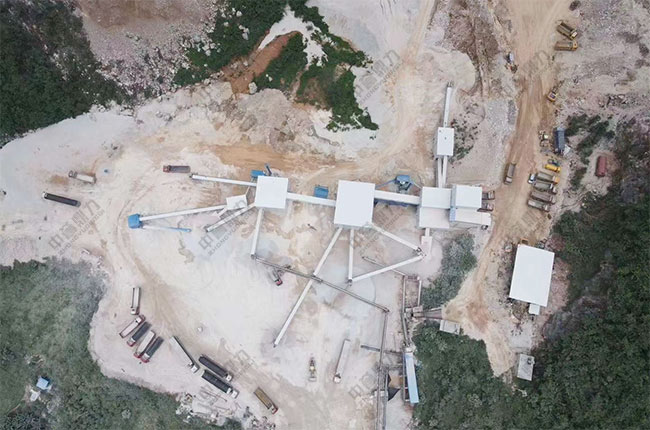 該碎石項目采用了頭破+二破的搭配方式,原物料先經(jīng)過重錘破進行粗碎,再進入整形錘破進行中碎、細碎,出料大小可以根據(jù)市場需求進行自由調(diào)節(jié),生產(chǎn)出來的石料經(jīng)過振動篩進行篩選分級后,由皮帶機輸送至成品料堆。