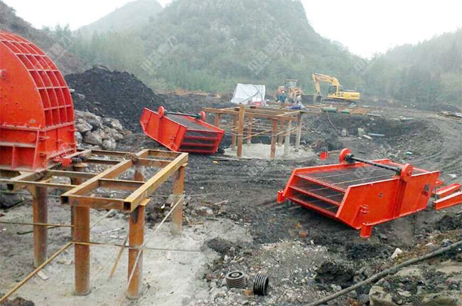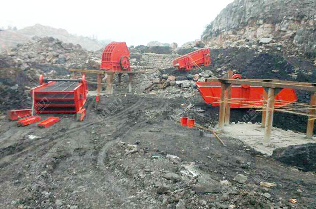 上面是在項(xiàng)目建設(shè)中期拍攝的圖片,從施工現(xiàn)場(chǎng)可以看到,重錘破、給料機(jī)、振動(dòng)篩等主要設(shè)備都已經(jīng)到達(dá)安裝現(xiàn)場(chǎng),技術(shù)人員正在準(zhǔn)備安裝。