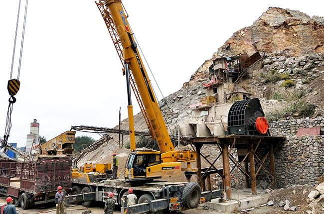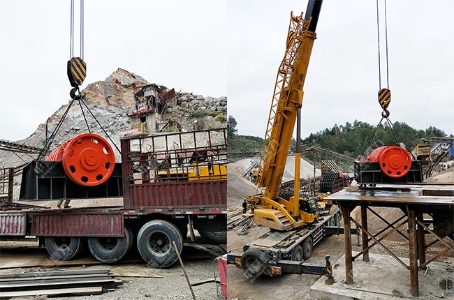 上面是重型錘式破碎機(jī)從廠家到達(dá)安裝現(xiàn)場(chǎng)的圖片,從圖中可以看到,安裝地基已經(jīng)建好,設(shè)備的主體部件正在吊裝。
