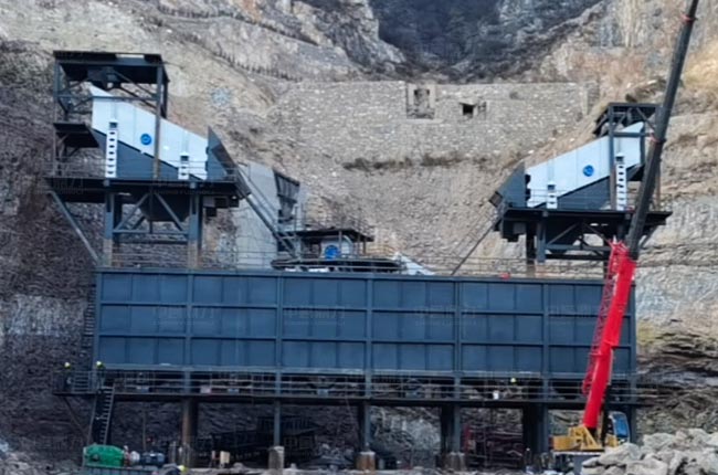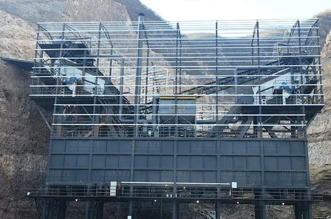 河北涉縣該項(xiàng)目立體式骨料生產(chǎn)線(xiàn)設(shè)計(jì),具有生產(chǎn)結(jié)構(gòu)緊湊,場(chǎng)地優(yōu)化等特點(diǎn)。振動(dòng)篩設(shè)備安裝于料倉(cāng)頂部,大大節(jié)省安裝、輸送、結(jié)構(gòu)等成本。