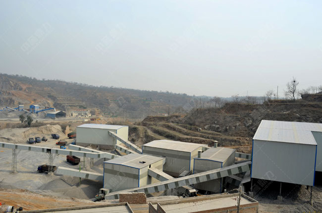 該條時(shí)產(chǎn)量700噸的砂石骨料生產(chǎn)線配用一臺(tái)1615重錘破碎機(jī)就能完成對(duì)石灰石的破碎作業(yè),破碎后就可直接經(jīng)過篩分機(jī)械進(jìn)行篩分處理,不需要投資二破進(jìn)行整形破碎,整條生產(chǎn)線可以節(jié)省40%的投資成本。
