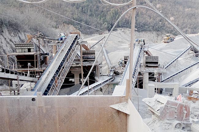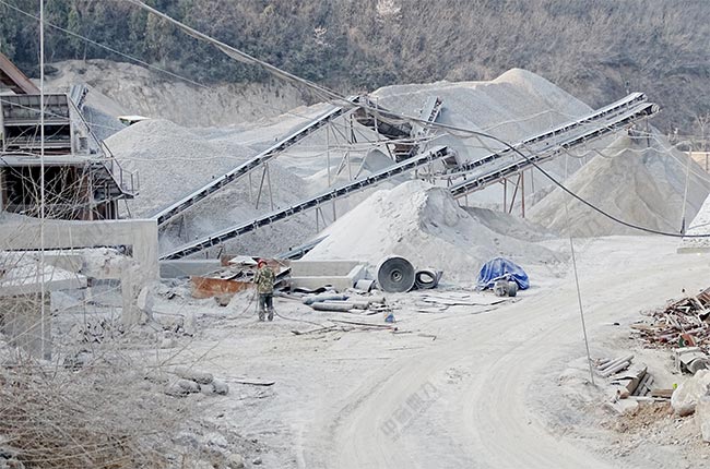 湖北丹江口鑫蘭礦業(yè)的石料生產線由河南中譽鼎力承包建成,2015年10月開工,2016年4月正式投產,配置了重錘破、錘破、振動篩等生產設備,原料是石灰石,出料粒度在5-30mm之間,日產量5000方左右。