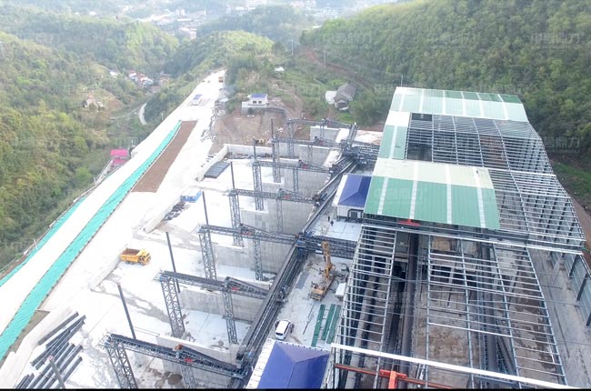 湖北松滋年產(chǎn)300萬噸封閉式沙石料廠航拍圖