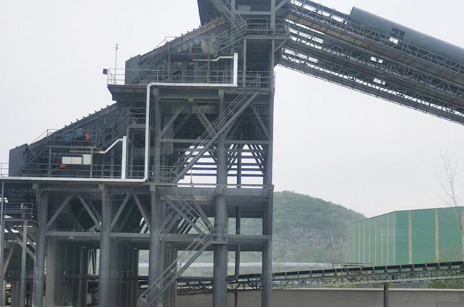 采用雙線并行設(shè)計(jì),兩臺(tái)DLPCZ重型錘式反擊破碎機(jī)對(duì)原料進(jìn)行破碎,通過皮帶機(jī)輸送至振動(dòng)篩篩選分級(jí),振動(dòng)篩階梯式設(shè)計(jì),減少皮帶機(jī)的投資,實(shí)現(xiàn)多種規(guī)格石料的篩分。