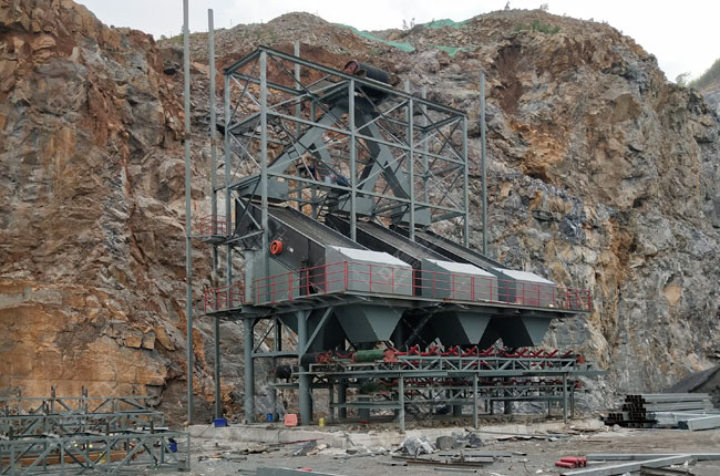 億達(dá)建材石料有限公司新建的這條日產(chǎn)10000噸的石料生產(chǎn)線(時產(chǎn)量在1000噸),采用重型錘式破碎機+整形破+配套設(shè)備,石料裝車采用封閉的地龍皮帶自動裝車系統(tǒng)。