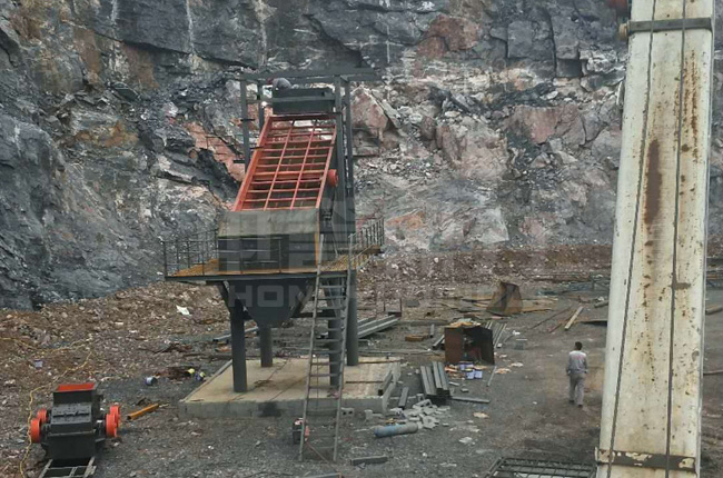 該項目是中譽鼎力提供設備并安裝,設備10月16日配送進場,預計12月18日竣工,是一條200噸石子破碎制砂生產(chǎn)線。