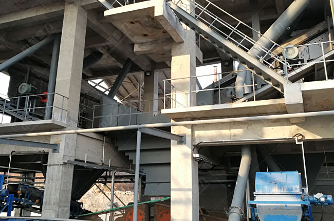 制沙樓稱為干式制砂整形系統(tǒng),又稱塔式制砂樓,其將生產(chǎn)線高度集成式設(shè)計(jì),可以節(jié)省較大的占地空間。該項(xiàng)目引進(jìn)該塔式制砂系統(tǒng),不僅節(jié)省了土地面積的大筆投資,同時(shí)也節(jié)省了輸送設(shè)備的投資,整體投資較小,生產(chǎn)效率較高。