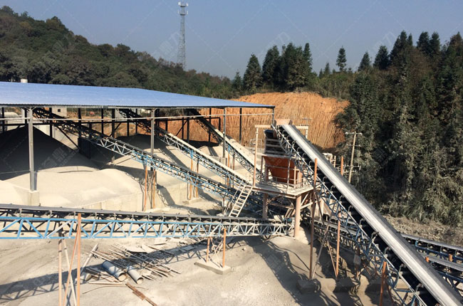 江西景德鎮(zhèn)時產200噸石子破碎生產線,加工的石料用于瀝青拌和站,同時進行了環(huán)保設計。