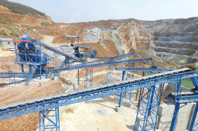 該項(xiàng)目2017年3月10日投產(chǎn),加工螢石,生產(chǎn)2-5mm、5-8mm化工廠使用的物料。依據(jù)螢石礦特性,為其配置了“69顎破+1615錘破+振動(dòng)篩”及其余配套設(shè)備。