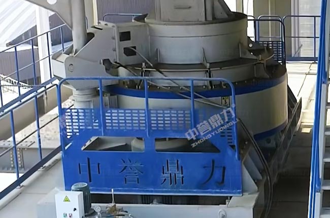 05料通過400提升機進入封閉皮帶機,進入沖擊破整形制砂,然后進入振動篩控制粒型,篩下料進入閉路循環(huán)選粉系統(tǒng)(先進靜態(tài)選粉機再進動態(tài)選粉機),篩上料通過提升機再次返回制砂機成型制砂。
