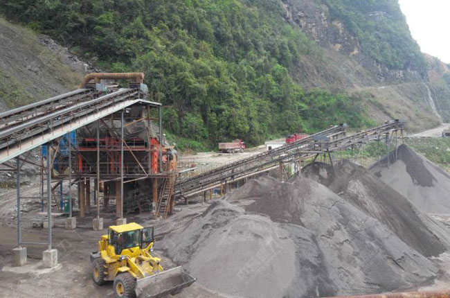該生產線是一條日產5000噸的石料生產線,主要采用錘式破碎機+整形破+圓振動篩以及其余配套設備組成,主要生產各種不同粒型的機制石料。