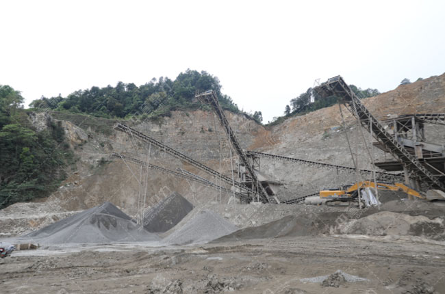 通過(guò)上面的案例現(xiàn)場(chǎng)圖可以知道,該項(xiàng)目利用了有力的地勢(shì)地形,采用階梯式設(shè)計(jì),給料、破碎、篩分階梯式逐步完成,不僅占地面積小,還的節(jié)省了輸送機(jī)設(shè)備的投資,可謂是工藝簡(jiǎn)單,占地少,投資小的石子生產(chǎn)線。