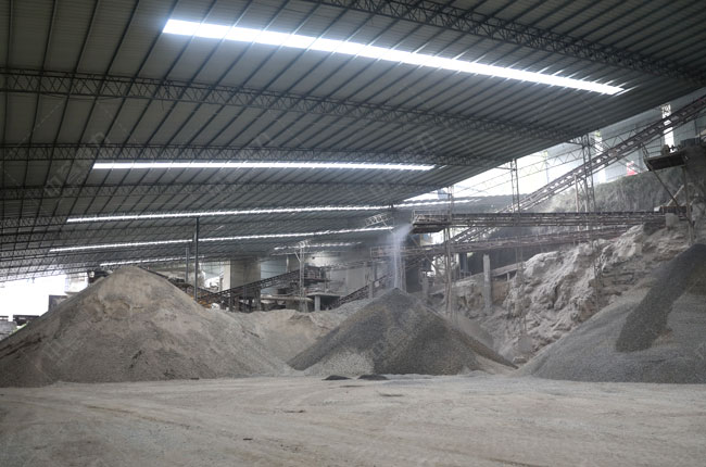 該項目生產(chǎn)線設(shè)計科學(xué)合理,整個生產(chǎn)流程采用封閉設(shè)計+除塵器+噴淋設(shè)施,減少粉塵污染,有配備消音器噪音污染,使得石料生產(chǎn)線環(huán)保效果更顯著。