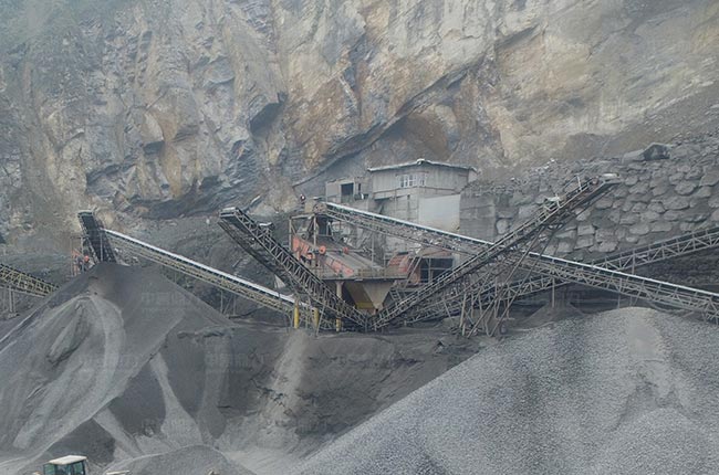 石灰石原料破碎加工流程給料——粗碎——整形——篩分——輸送,整個碎石破碎配置簡單,一臺PCZ1615重錘式破碎機粗碎加工,一臺PCX1220整形破碎,生產線運行穩(wěn)定,配置合理,排料粒度大小根據需求調節(jié)。