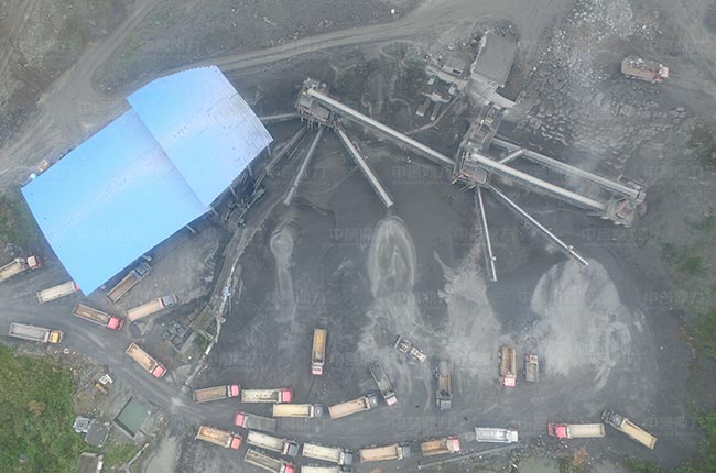 該項目采用兩段破碎工藝,采用PCZ1615重錘破粗碎、PC1220整形破整形破碎,通過兩道YKZ系列振動篩篩分出6種不同規(guī)格的石料。