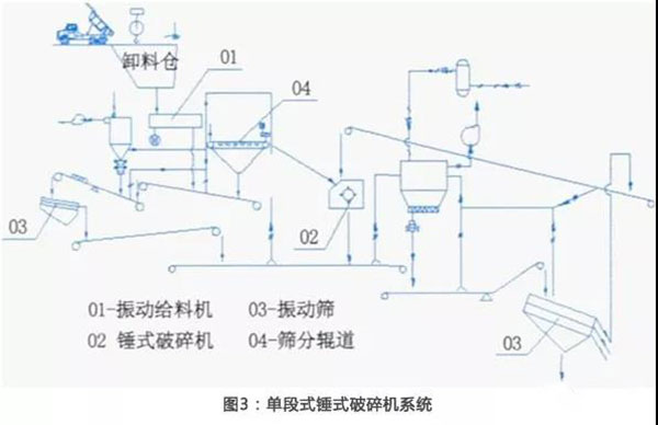 a) 當系統(tǒng)能力要求較大時需要三級破碎或者較多臺破碎機,此時流程復雜,項目投資高;