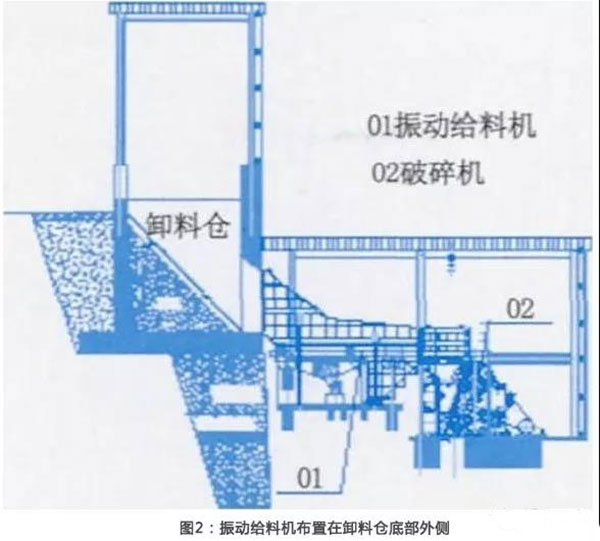 圖2:振動給料機布置在卸料倉底部外側(cè)