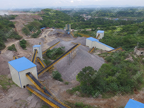 石塊在振動送料機(jī)的影響下,被均勻的送回顎破內(nèi)進(jìn)行粗碎破碎,后進(jìn)入圓錐碎石機(jī)進(jìn)行中、整型破碎破碎,經(jīng)二段破碎后的石塊在運(yùn)輸機(jī)的影響下被送回破沙機(jī)進(jìn)行更細(xì)的破碎,制砂后的石塊通過三層篩機(jī),不合格的返回繼續(xù)進(jìn)行破碎,合格的石塊顆粒在篩機(jī)的影響下,被分成三種不同的粒級,在運(yùn)輸機(jī)的影響下被輸出。