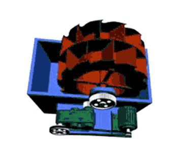 作業(yè)時,動力體系經(jīng)過V型皮帶、減速機(jī)、齒輪減速后葉輪緩慢轉(zhuǎn)動,砂石由喂料槽進(jìn)入洗槽中,在葉輪的下翻滾,并互相研磨,除去遍及砂石表觀的異物,此時破損包覆砂粒的水汽層,以利于脫水;此時加水,造成強(qiáng)悍水流,立刻將異物及比重小的異物沖走,并從溢出口洗槽排出,達(dá)成清洗步驟。