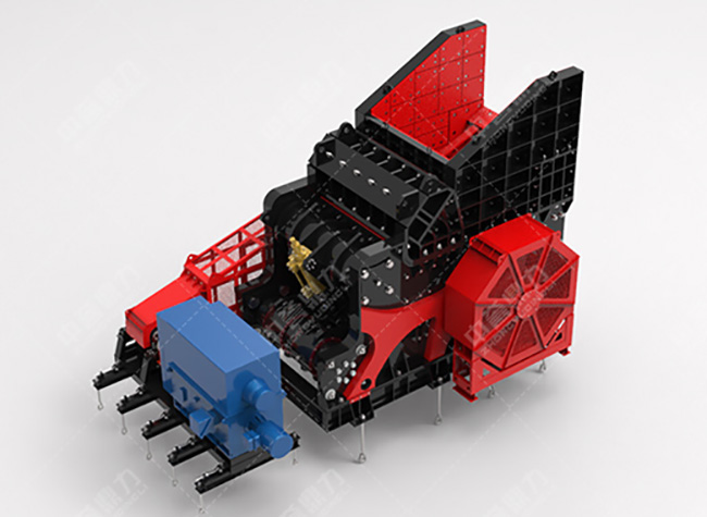 臥式旋回破碎機主要是由傳動總成、防護罩檢查門、下破碎壁總成、上破碎壁總成、進料斗總成、旋回軋輥總成、篩分蓖板總成、恒定破碎腔、防護罩總成、機架總成、恒定排礦口、液壓調(diào)整及過載保護裝置組成。