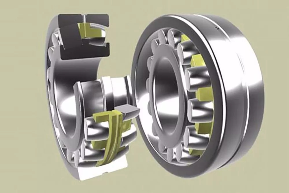 調(diào)心滾子軸承不但具有較大的徑向承載能力,而且能承受任方向的軸向載荷,調(diào)心性能良好,能補(bǔ)償因軸承座孔加工造成的不同軸問題,但不能承受純軸向載荷。